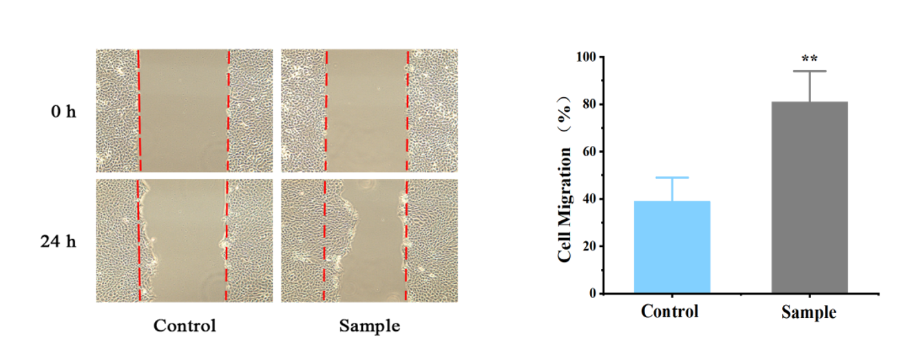 與空白對照相比,樣品作用后細(xì)胞遷移能力增強(qiáng),說明樣品具有良好的修護(hù)功效。