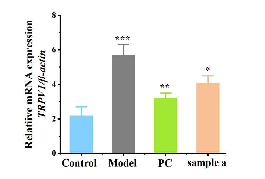 與模型組相比,樣品組TRPV1表達(dá)下調(diào),表明樣品具有一定的舒緩功效。